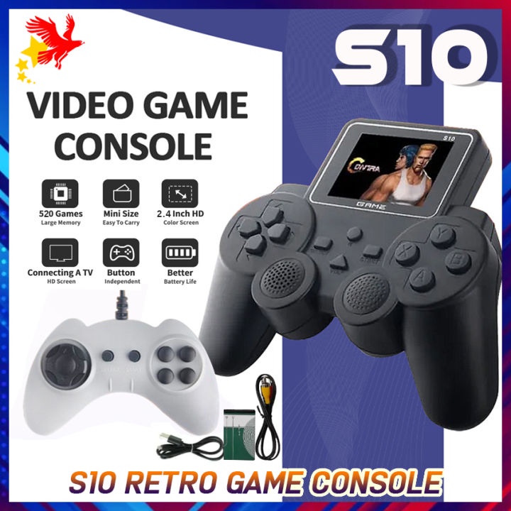 جهاز S10 هو منصة ألعاب فيديو رقمية محمولة (أتاري) بتصميم مبتكر على شكل يد تحكم (Gamepad) مريحة لليدين. يأتي الجهاز مزوداً بشاشة ملونة مدمجة، ويحتوي على مكتبة ضخمة تضم 520 لعبة من ألعاب الفيديو الكلاسيكية (Retro Games). يتميز بوجود يد تحكم إضافية منفصلة تسمح بلعب شخصين معاً، بالإضافة إلى كابل AV لتوصيله بشاشة التلفاز والاستمتاع بتجربة لعب منزلية متكاملة. الجهاز مجهز ببطارية قابلة للشحن المباشر ليكون جاهزاً للمغامرة دائماً.