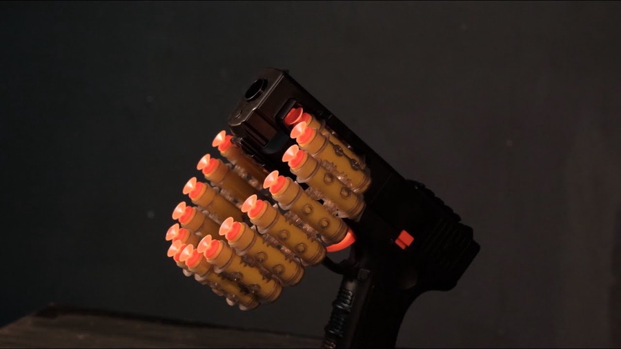 - حزام طلقات دائري مبتكر: تصميم فريد يسمح بتعبئة عدد كبير من الطلقات معاً، حيث يدور الحزام لتجهيز الطلقة التالية، مما يقلل من وقت إعادة التعبئة ويزيد من متعة اللعب المتواصل.