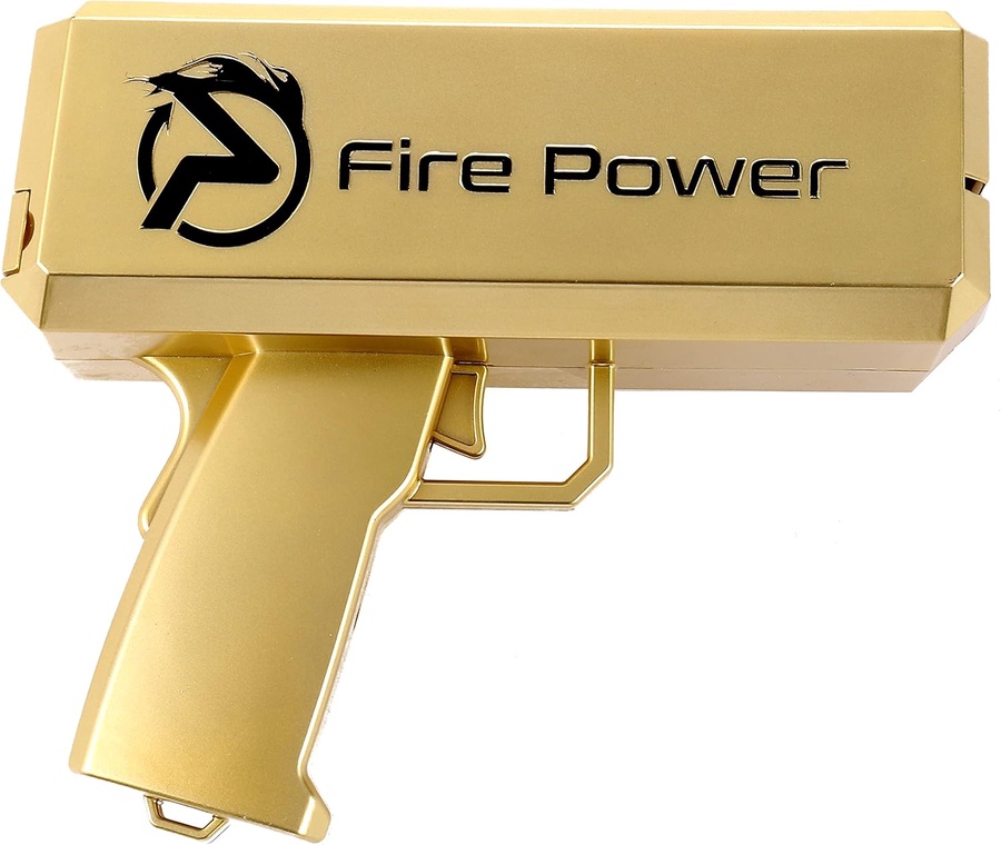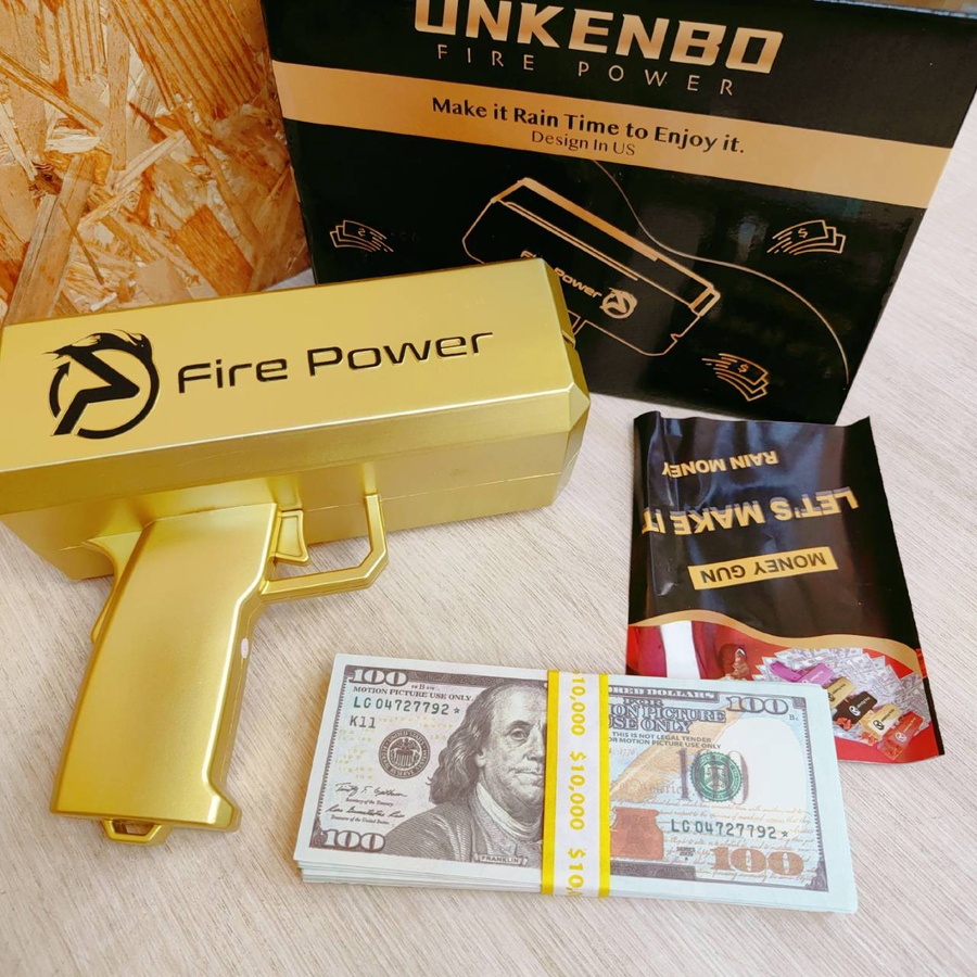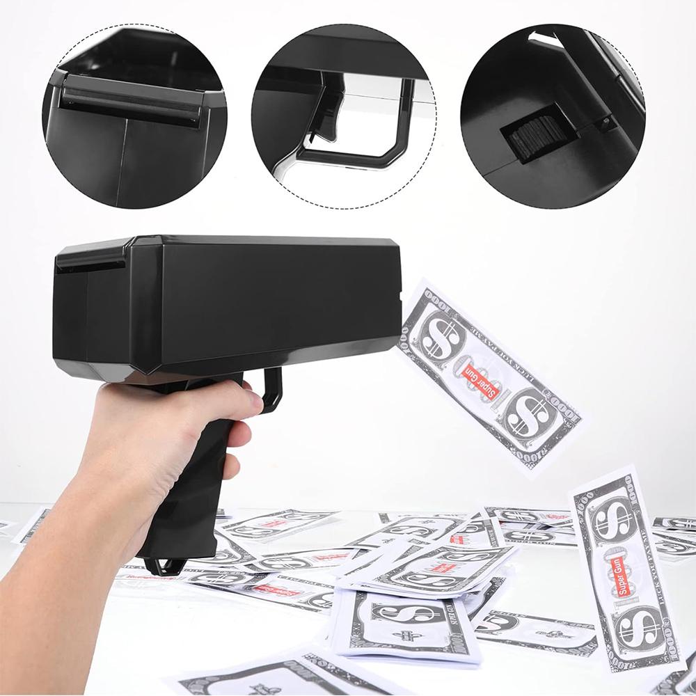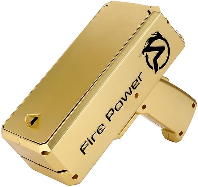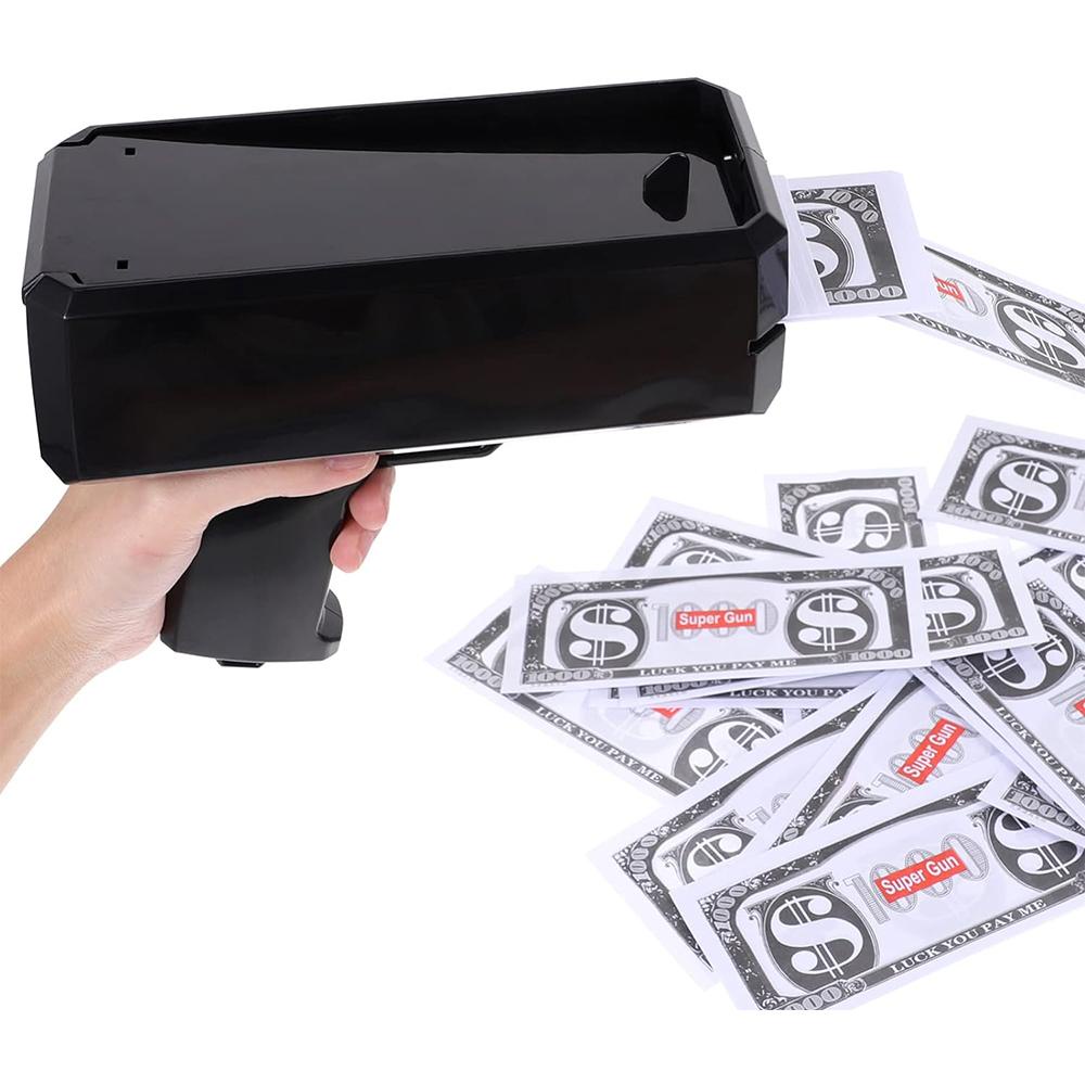 مسدس الفلوس (Money Gun) هو أداة ترفيهية مميزة تأتي بتصميم أنيق وعصري (متوفر باللونين الذهبي اللامع والأسود الجذاب). يعمل بآلية كهربائية سريعة وعملية لإطلاق الأوراق النقدية بشكل متتابع وانسيابي في الهواء بمجرد الضغط على الزناد. يأتي الجهاز مرفقاً برزمة من الأوراق النقدية الترفيهية (دولارات اللعب) لتبدأ المرح فوراً، كما يمكنه استيعاب الأوراق النقدية الحقيقية أو أي أوراق مطبوعة بنفس الحجم.