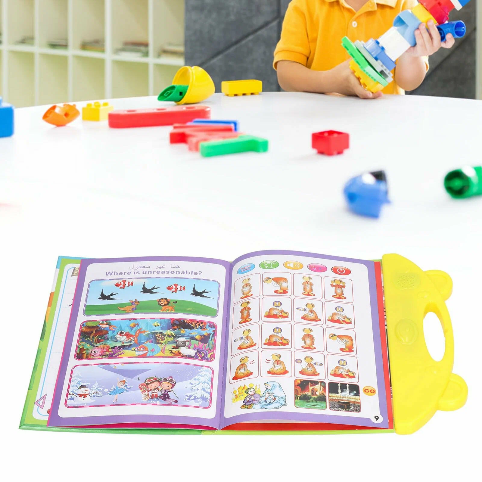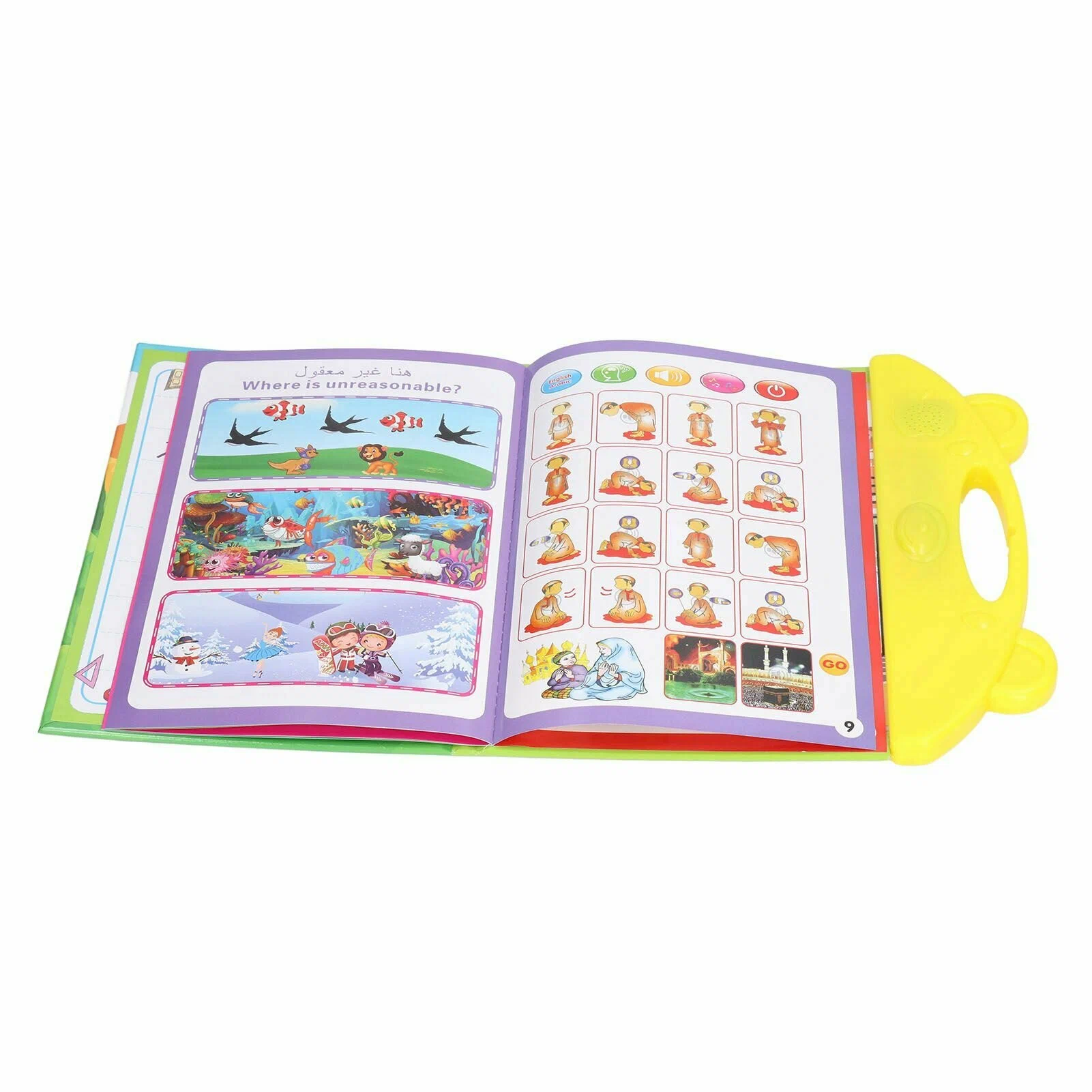 • تصميم جذاب وهادف: ألوان زاهية ورسومات مستوحاة من البيئة الإسلامية تشجع الطفل على التفاعل والشعور بالألفة.