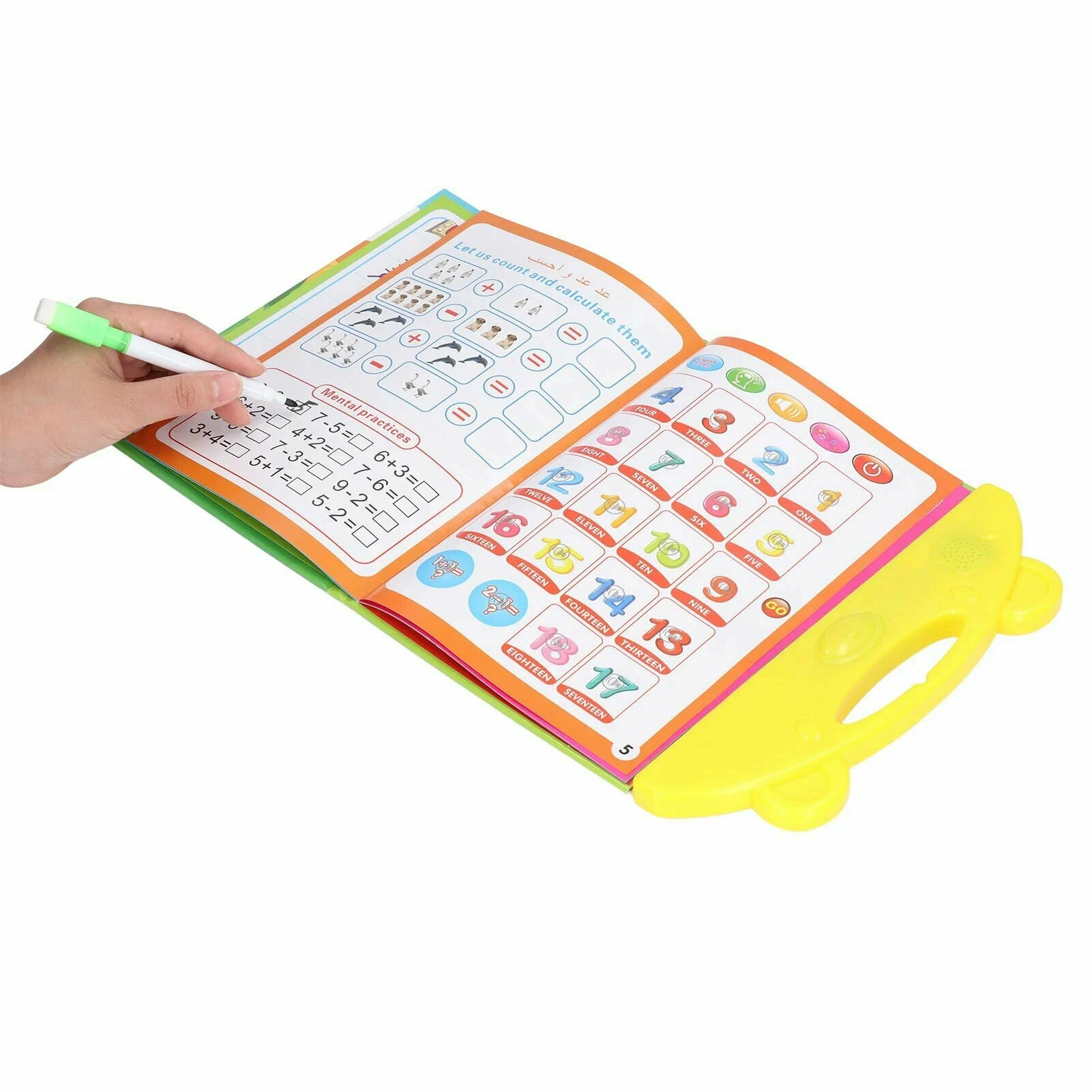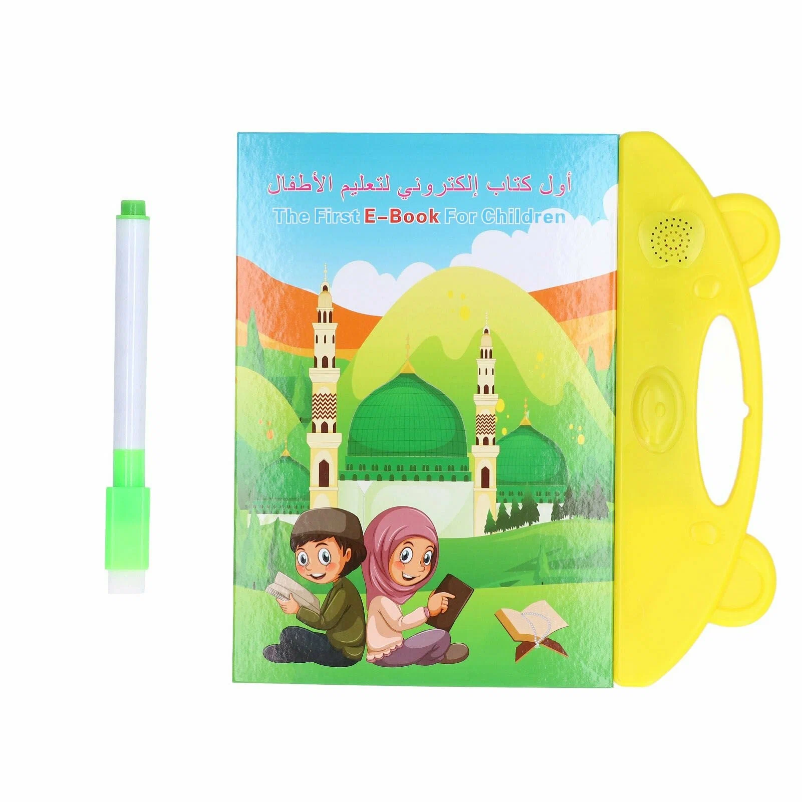 اللوح الناطق هو عبارة عن كتاب إلكتروني تعليمي تفاعلي يعتمد على اللمس الصوتي. يأتي مع قلم ذكي يقوم الطفل بتوجيهه نحو الأيقونات والكلمات المطبوعة على الصفحات ليصدر نطقها الصحيح فوراً. يغطي الكتاب مواضيع أساسية وشاملة مثل الأرقام، الألوان، الفواكه، وسائل النقل، وغيرها. يتميز بتصميم آمن وجذاب، وغلاف ذي طابع إسلامي هادف يشجع الطفل على التصفح والمشاهدة بمتعة، مما يجعله أداة التأسيس الأولى لطفلك في المنزل.